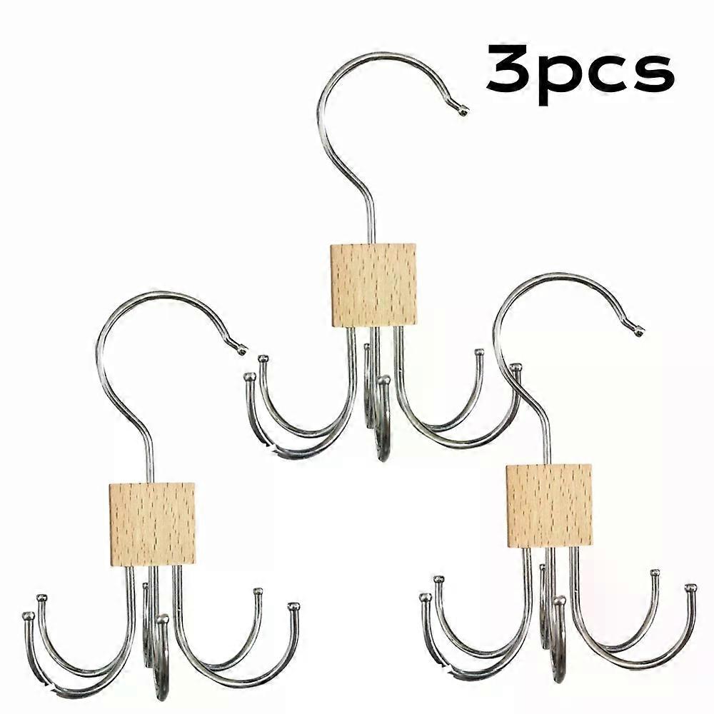 360° Rotating Storage Hanger Hook Multi-Claw Bag Metal Belts Rack Wooden Organizer For Bras Ties Scarves Household Closet Acces