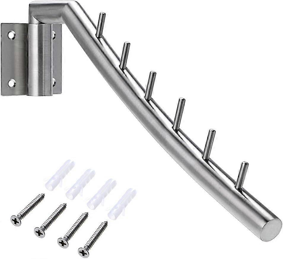 Coat Hook Bar Wall Mounted Stainless Steel Hook, Swing 180, 6 Closing Hangers to Organize Clothes, Towel etc.