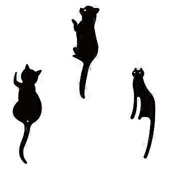 Animal Design Wall Hook 3Pcs Cat Shape Black Color For Home Owners Indoor Use Hanging