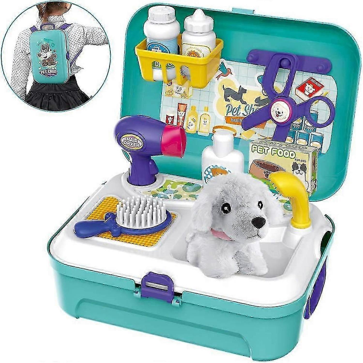 Veterinarian Playset Dog Salon Pet Set In Case Small Backpack Role Play Toy With 16 Pieces For Child xi