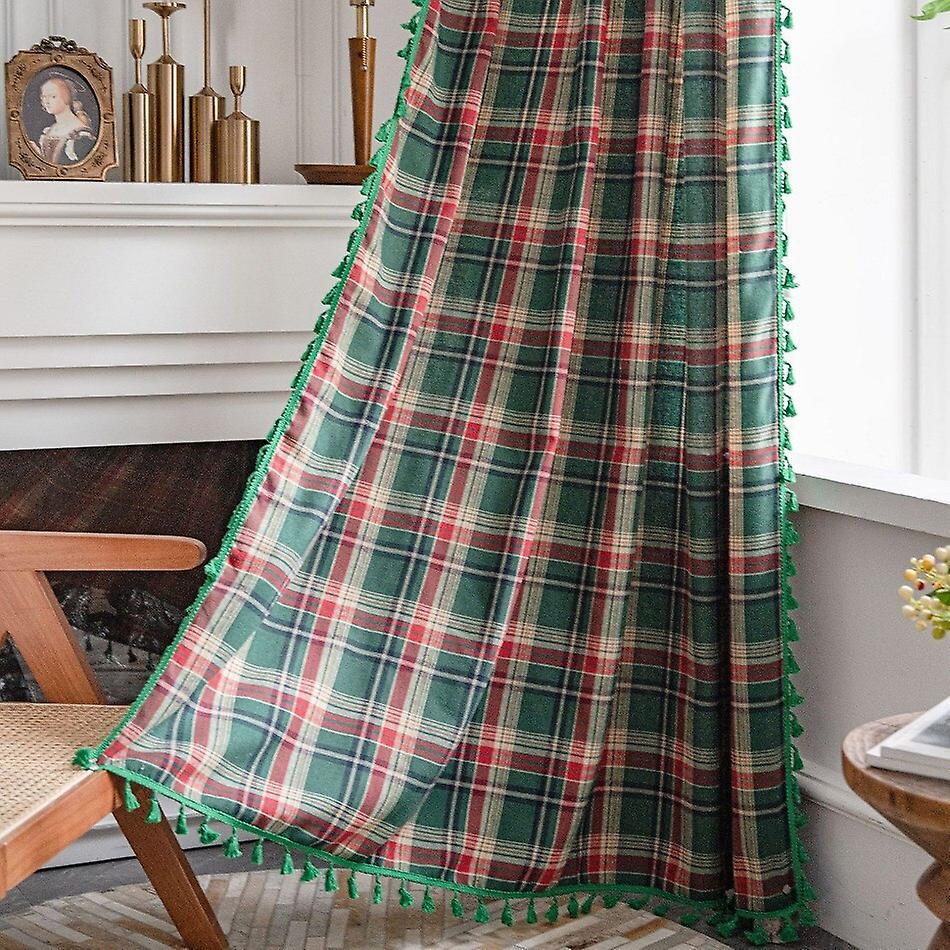 Curtain Half Blackout Cotton Linen Yarn Dyed Black White Plaid Tassel American Curtain For Bedroom Bay Window Curtain Finished