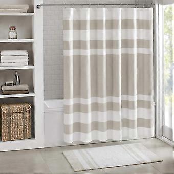 Shower Curtain Waffle Weave Striped Pieced Design Fabric Shower Curtain for Bathroom with 3M Scotchgard Moisture Management Premium Spa Quality Modern