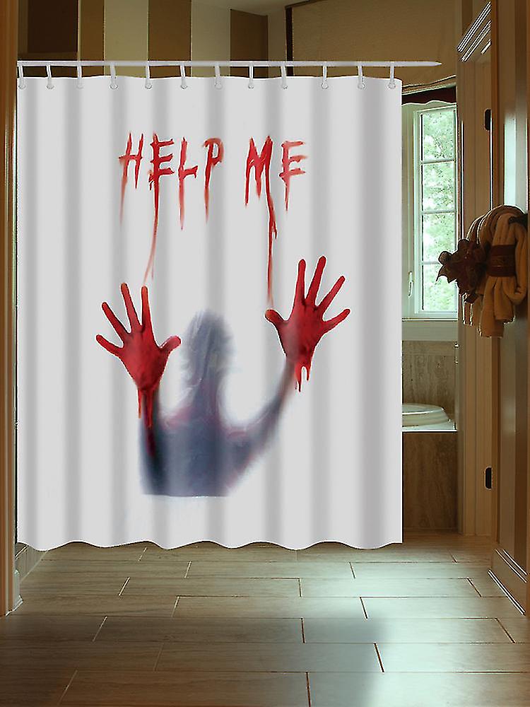 Halloween Shower Curtain With Horror Blood Handprint Design And 12 Hanging Loops For Bathroom Decor