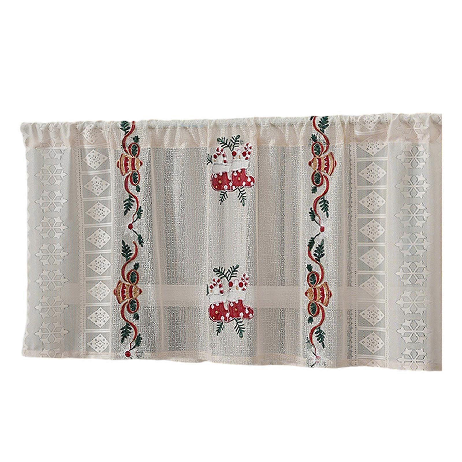 Christmas Lace Short Curtain With Embroidery For Festives Home Decors Sheer Window Drape Valance Panel Easy Installation 140 100cm