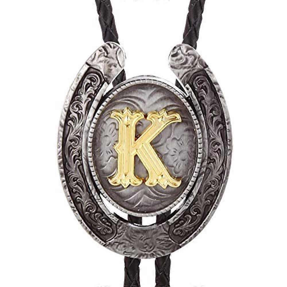 Vintage Gold Letter Abcdefg-z U Shape Bolo Tie For Man Indian Cowboy Western Cowgirl Leather Rope Zinc Alloy Necktie