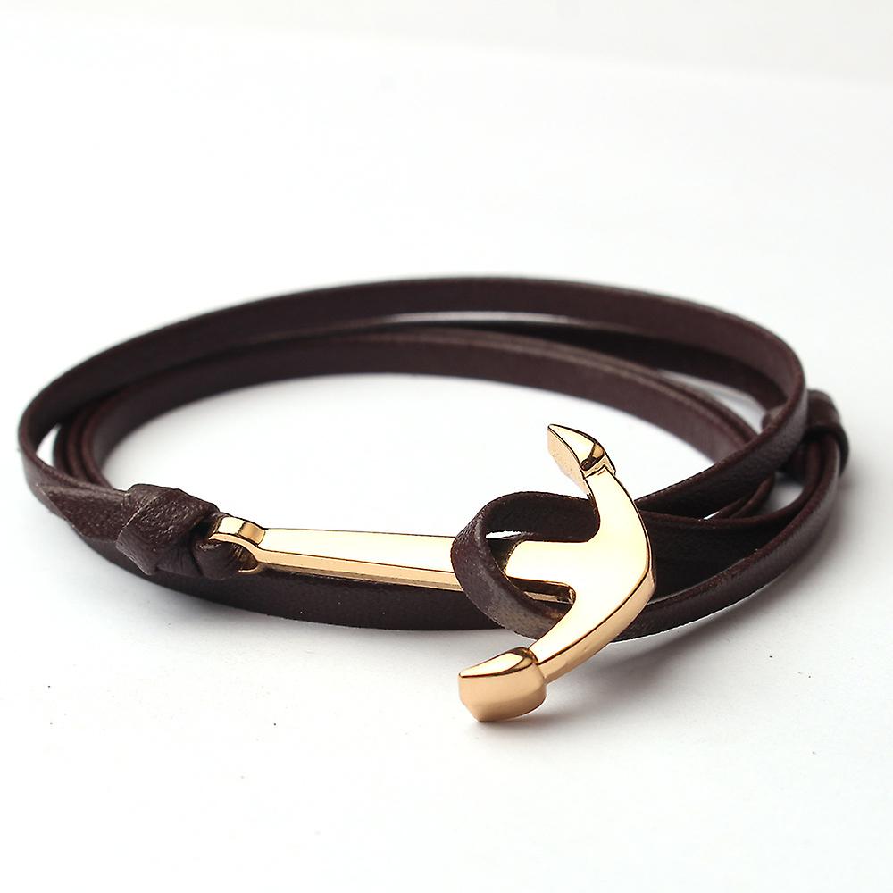 Vintage Gold Metal Anchor Bracelet Multilayer Leathers Rope Chain Armband Retro Handmade Bracelets For Women Men Jewelry Gifts
