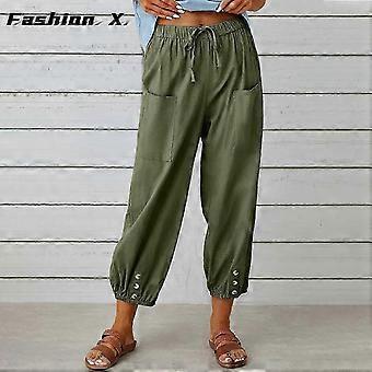 וינטאג כותנה פשתן בגדי ריקוד נשים מכנסי חוף דקים בגדי ריקוד נשים מזדמנים מותן גבוה מותן רופף גב מכנסיים