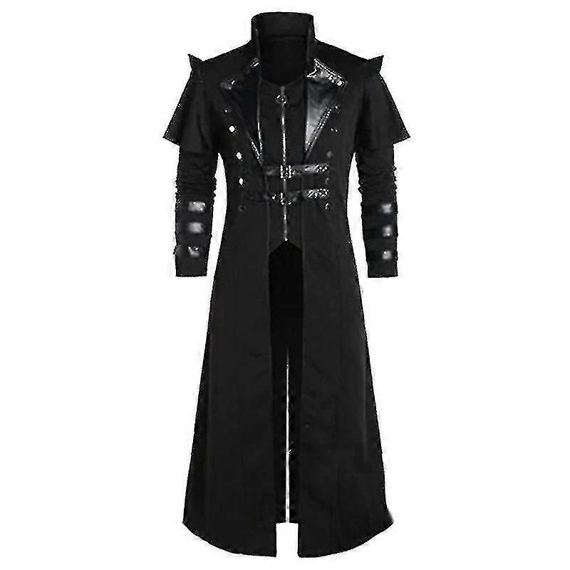 Vintage Halloween Medieval Steampunk Assassin Elves Pirate Costume Adult Men Black Long Split Jacket Gothic Armor Leather Coats V