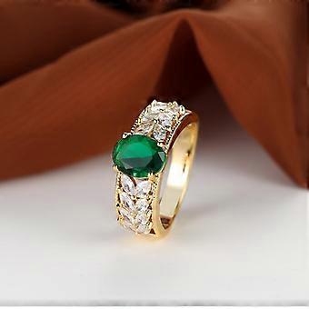 Vintage Palace Style Hollow out Green Stone Finger Rings For Lady Luxury Gold Color Wedding Rings Jewelry Gifts