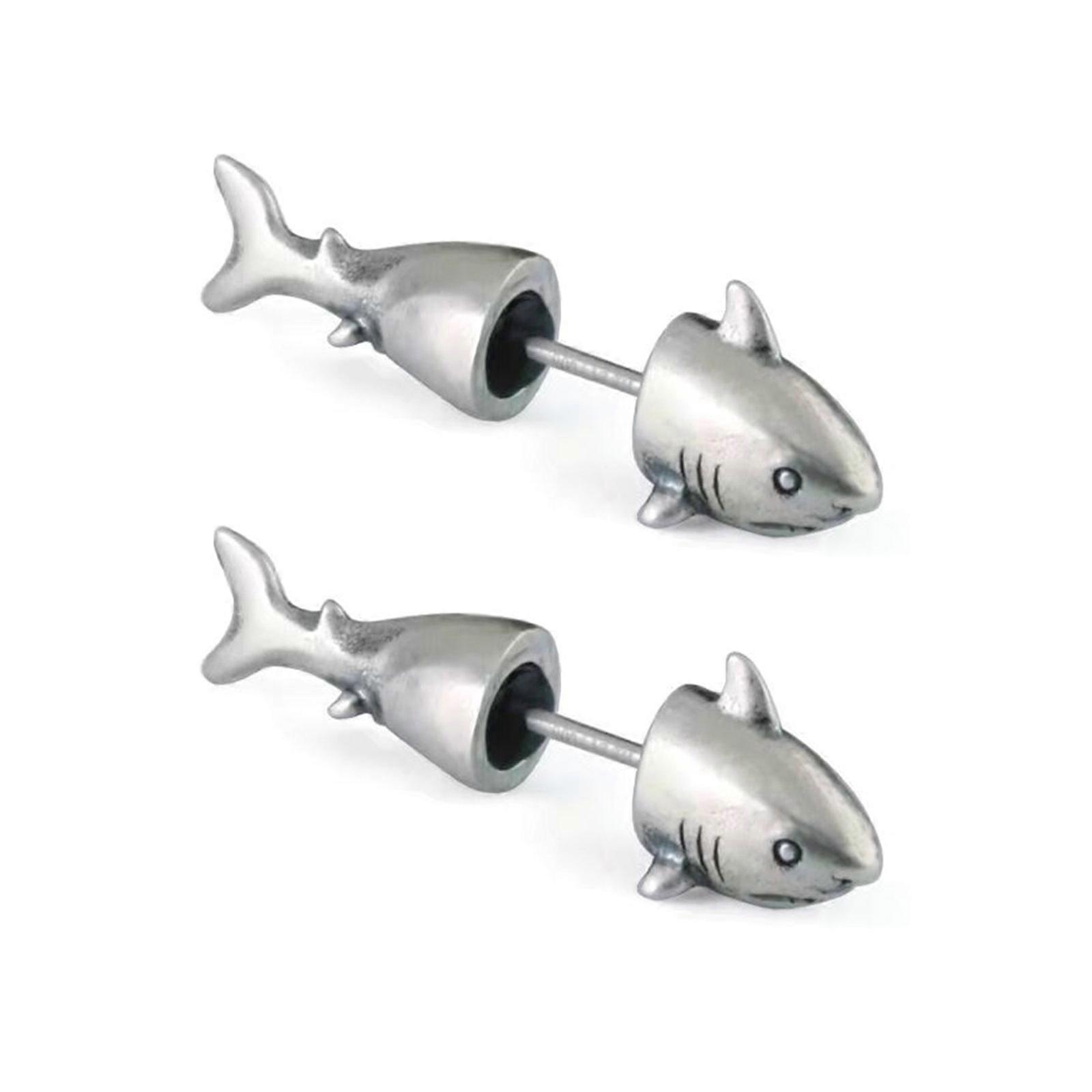 Vintage Silver Shark Stud Earrings Novel Punk Shark Earrings for Men Women Hip Hop Jewelry Party Earrings Accessories Multicolor