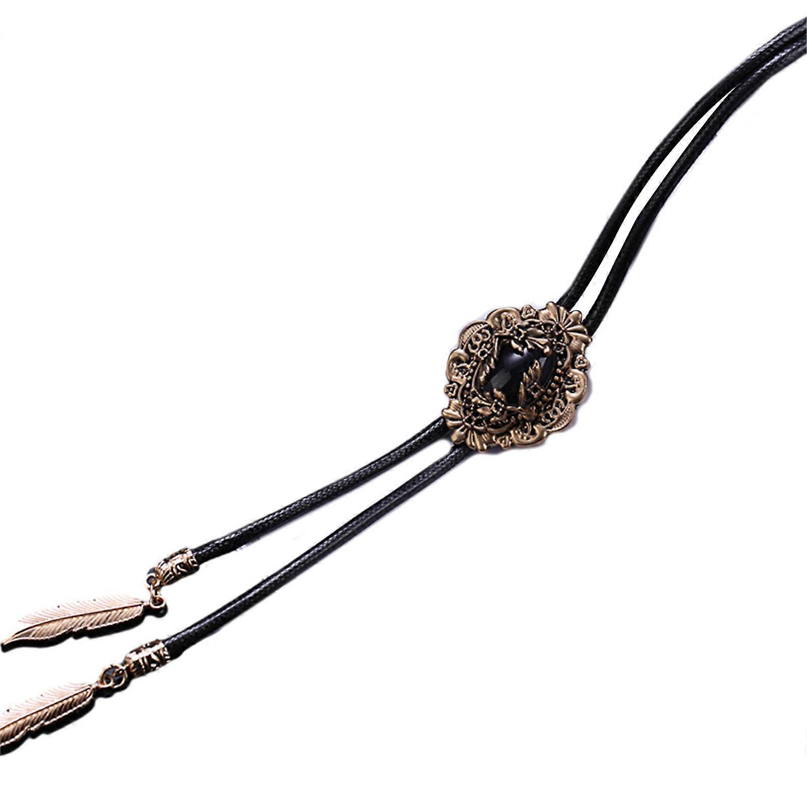 Vintage Western Cowboy Bolo Tie Crystal Necktie Rodeo Necklace Costume Accessory Native American Style Bola-Tie Western