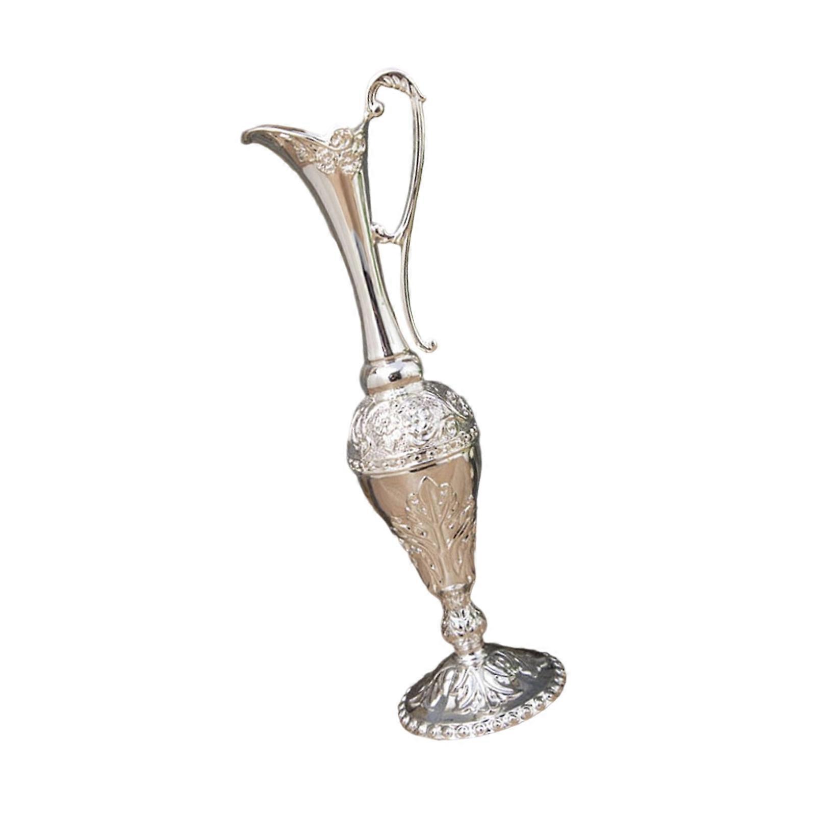 Vintage Antique Metal Vases With Geometric Detailing Embossed Flower Container For Living Space Bedrooms Centerpieces silver