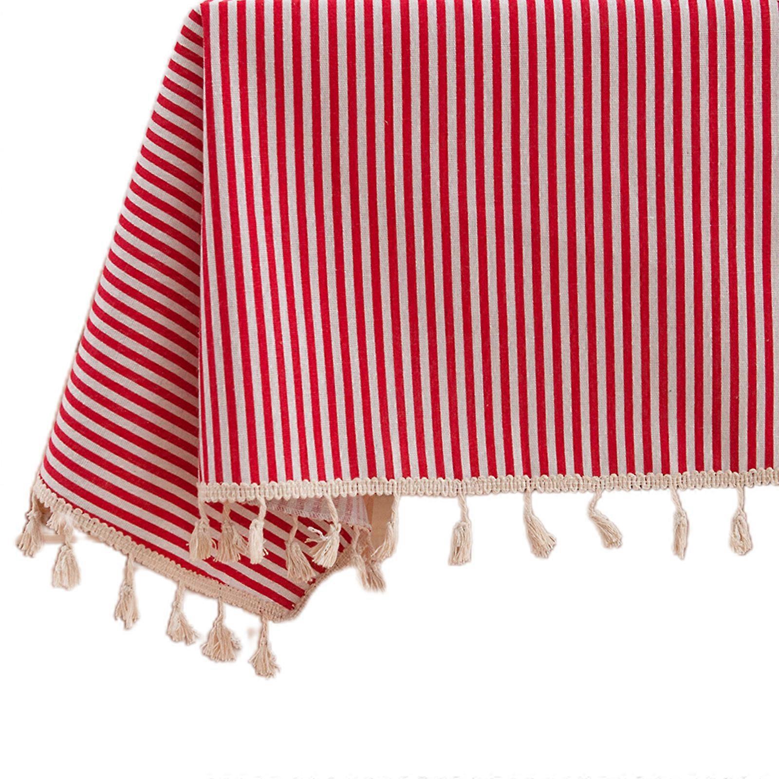 Vintage Pastoral Style Fringe Tassels Tablecloth Daisy Floral Stripes Printed Cotton Linen Dustproof Rectangle Table Cover for Kitchen Dinning