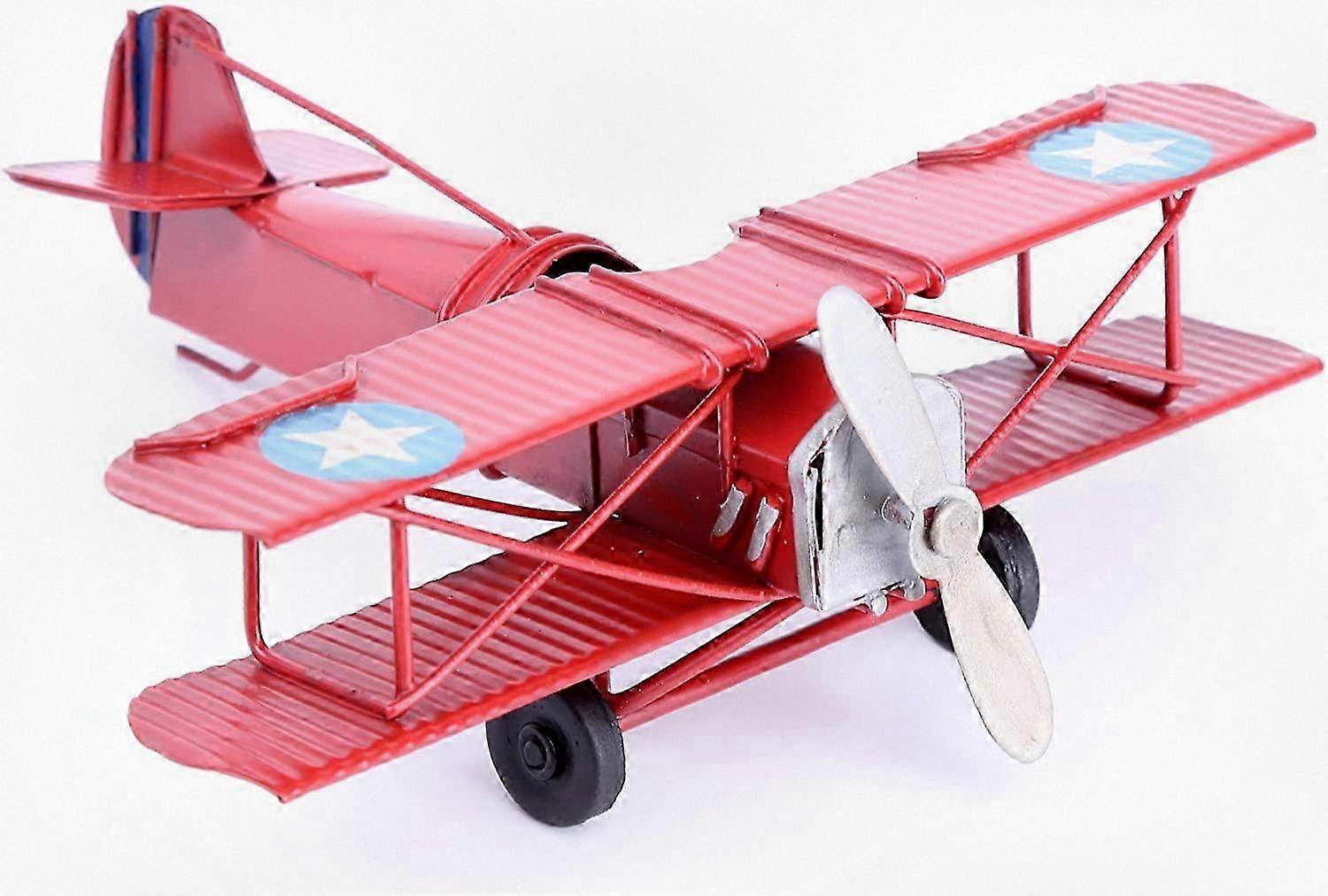 Vintage Retro Wrought Metal Iron Biplane Aircraft Handicraft Model - Photo Props for Home Decor, Ornament, or Souvenir (Red)