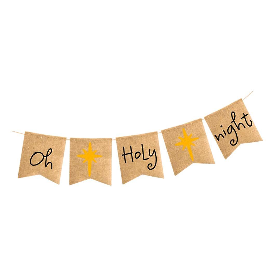 Vintage Burlap Oh Holy Night Banner Fabric Garland Sign Hanging Decor