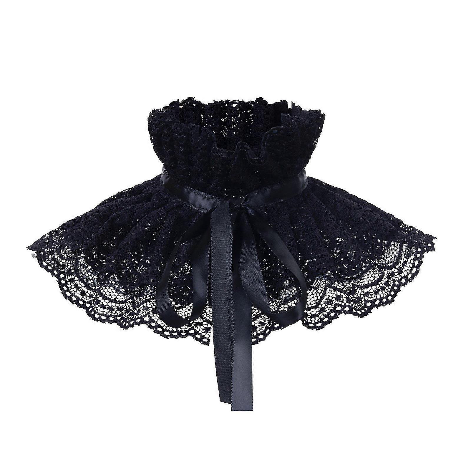 Victorian Ruffled Lace Black False Collar with Ribbon Ties Vintage Elegant Pleated Neck Ruff Detachable Shawl Capelet