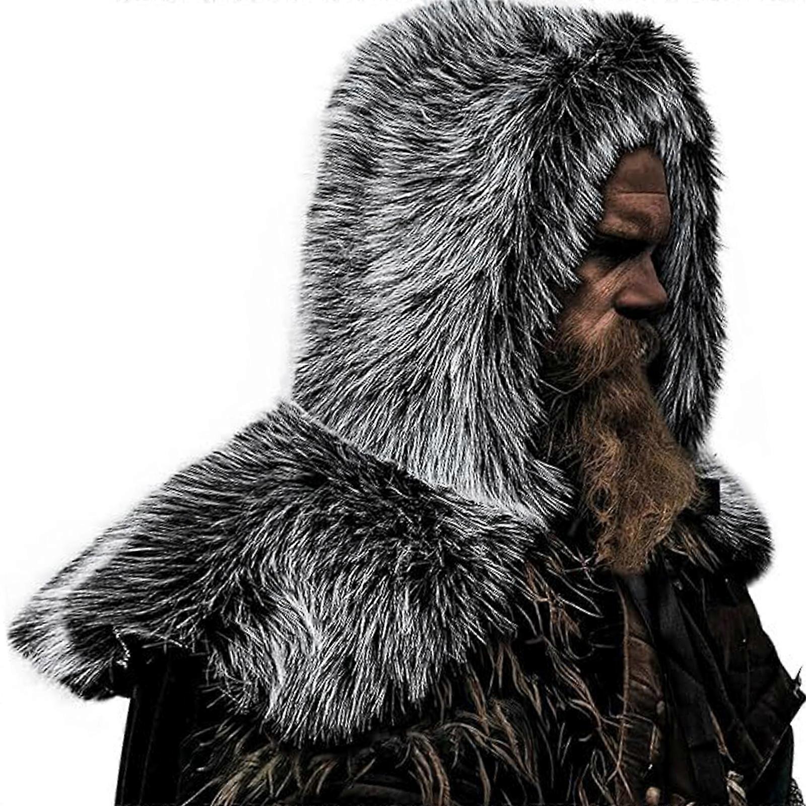 Vikinges Faux Furs Collar with Pin Medieval Knight Shoulder Wrap Warriour Cape Shawl Renaissances LARP Cosplay Costumes Black and white two