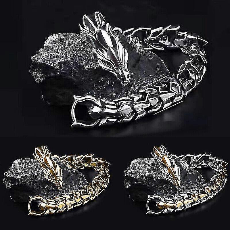 Viking Dragon Link Chain Bracelet Cool Men Stainless Steel Ouroboros Bangle Gift