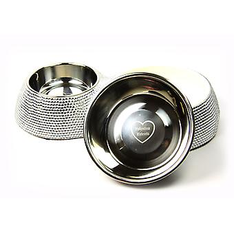 Valentina Valentti Cat Dog Pet Feeder Crystallised Double Pet Food Bowl Silver S