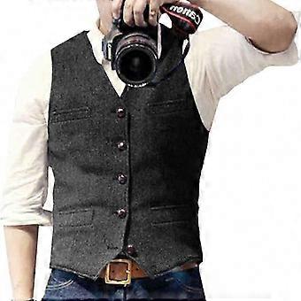 וסט טוויד עם צווארון V גזרה צמודה לגברים, לחורף ולסתיו, לחתונה ולעסקים, לרשמיות עסקית