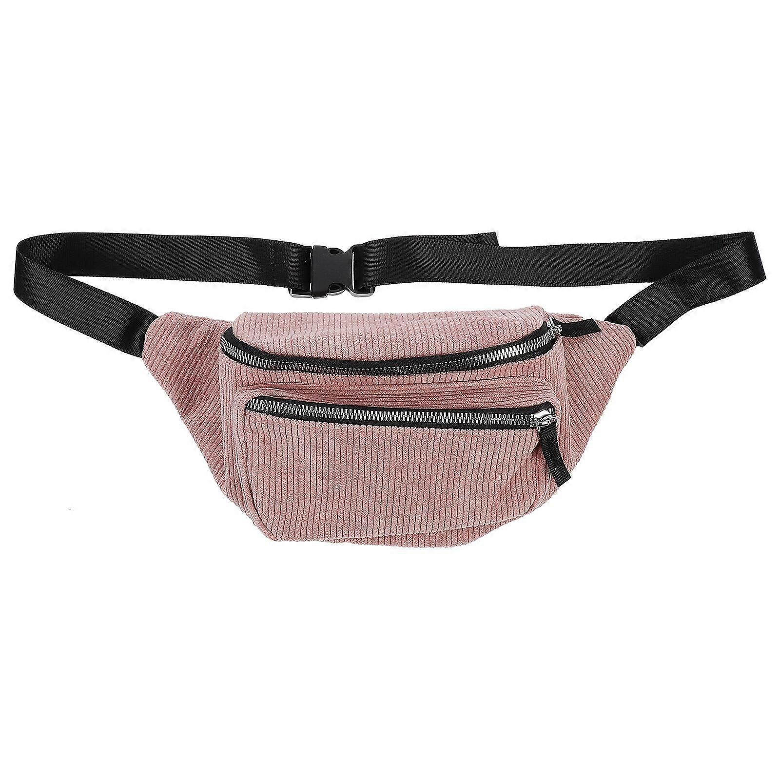 Pink Portable Waist Bag Fashion Stylish Chest Bag Corduroy Pack Lady Crossbody Pouch for Girl Woman