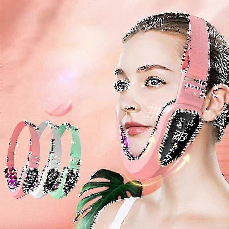 Pink LED Facial Lift Photon Therapy Vibrating Massager for Slimming Double Chin & V Cheek Lift