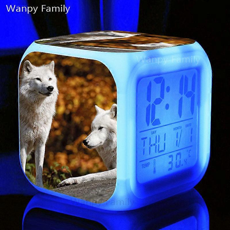 Arctic Wolf Alarm Clock 7Color Glowing Multifunction Touch Sensing Small Night Light Desk Clock Birthday Gift For Kids