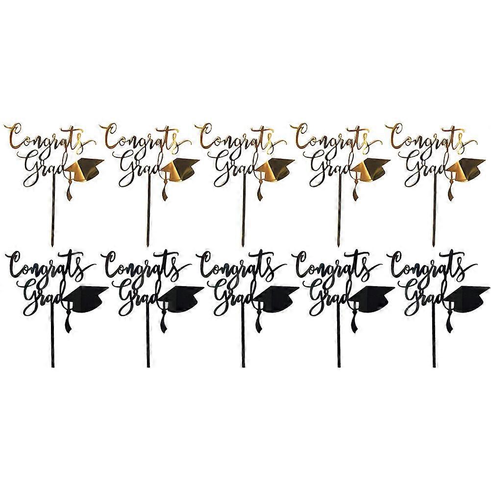 Gold And Black Acrylic Cake Toppers Graduation Hat Design For Cakes And Cupcakes Decoration 10Pcs Set