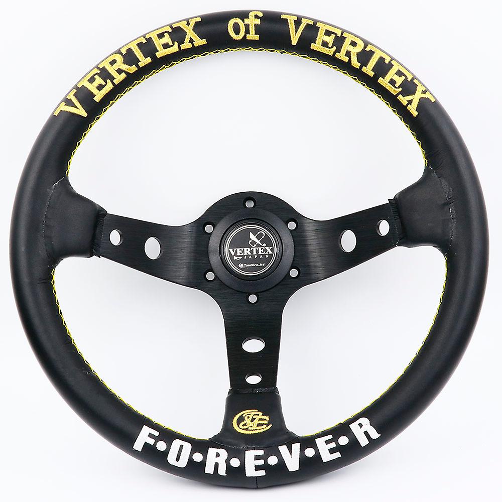 Gold and White Embroidery 13 inch Forever Black Genuine Leather Drift Sport Steering Wheels~13871