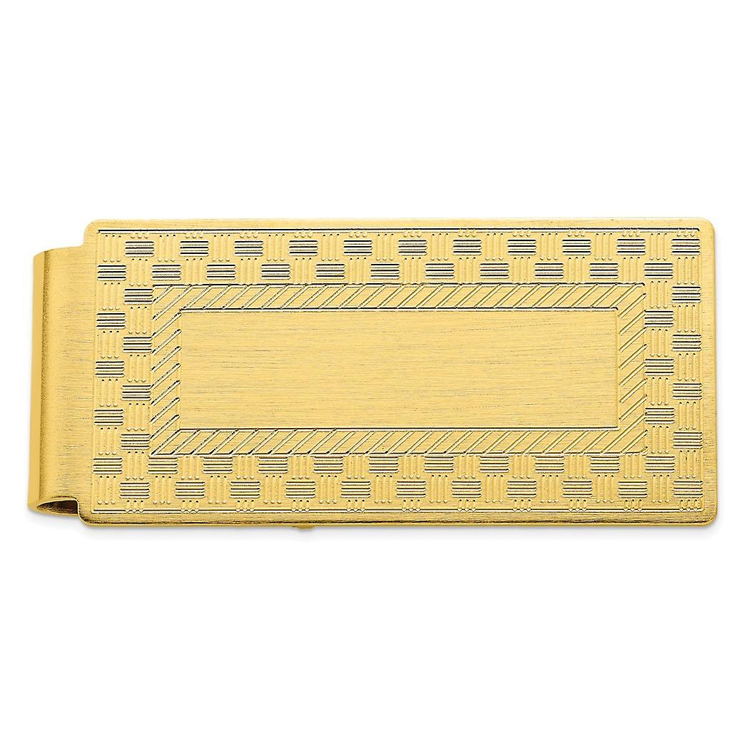 Gold Plated Solid Polished Patterned Engravable (front only) Checkerboard Hinged Money Clip 50x23mm Wide-Money-Clip for