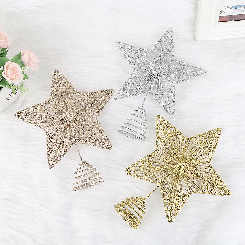 Gold Glitter Christmas Tree Top Iron Star Christmas Decorations For Home