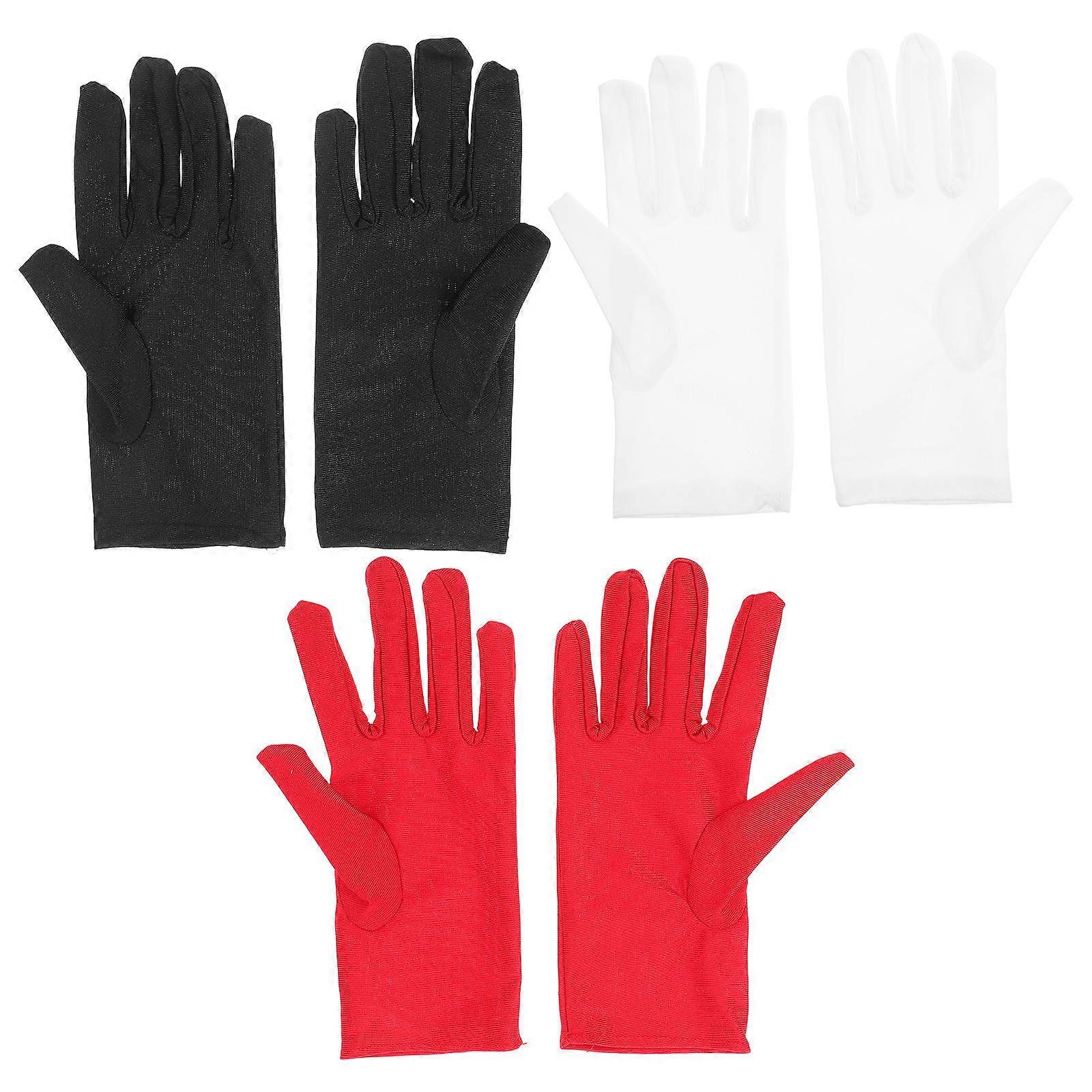 It sounds like you're describing a product listing for **"3 Pairs Elastic Spandex Jewelry Inspection Gloves – Stretchy Etiquette Gloves for