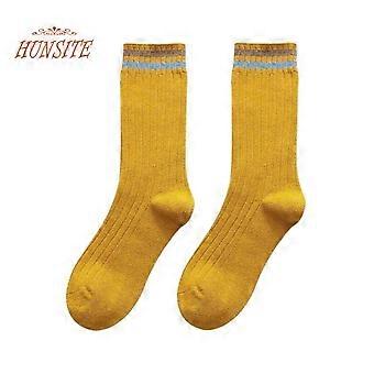 1 Pair Women Fall Winter Socks, Solid Color Mid-tube, Thick Warm No Odor Elastic Anti-slip, Striped Sweat Absorption Lady Mid-calf Socks