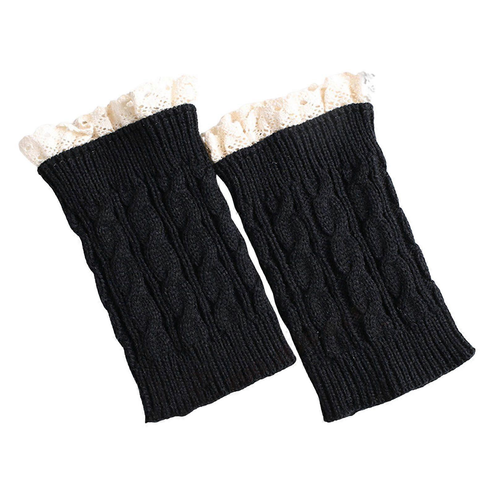 1 Pair Calf Covers for Boots Lace Trim Knitted Thick Keep Warm Over-the-Knee Socks High Elasticity Anti-slip Footless Calf Sleeves
