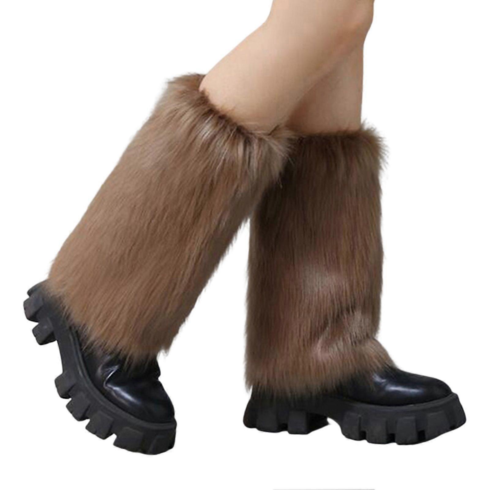 1 Pair Faux Fur Leg Warmers for Women Girls Plush Soft Boot Cuff Sleeves Fluffy Furry Leg Sleeve for Winter Warmth