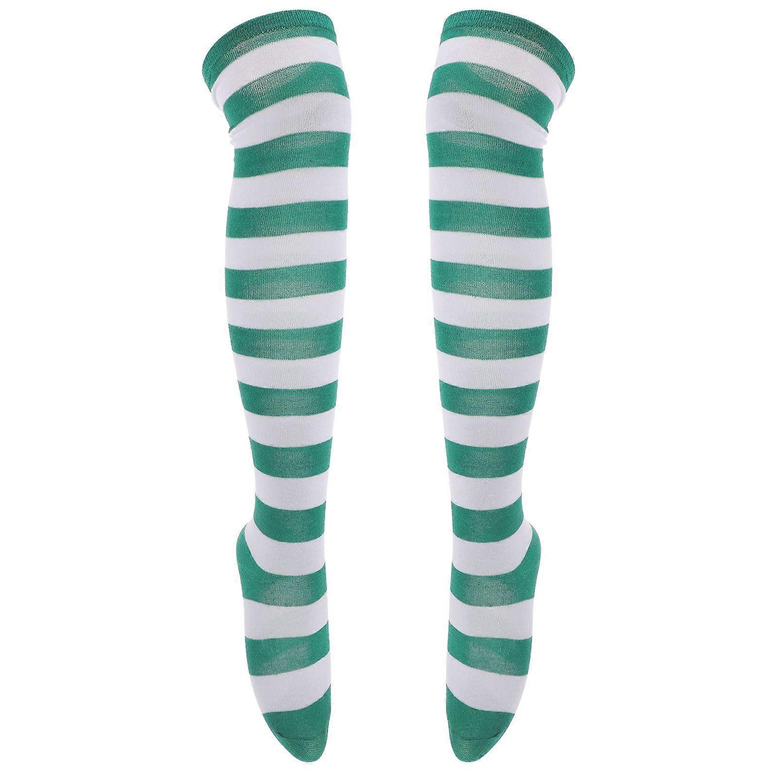 Pair of Women's Green and White Wide Striped Thigh High Over the Knee Stocking Socks (Green & White)