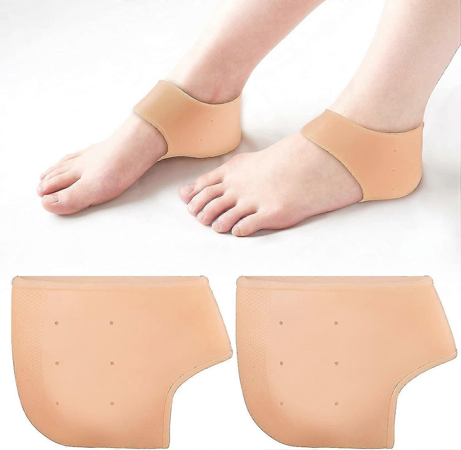 Pair of Silicone Gel Heel Sleeves, Silicone Heel Protector Pads, Breathable Silicone Heel Protector, Foot Air Support, Beige
