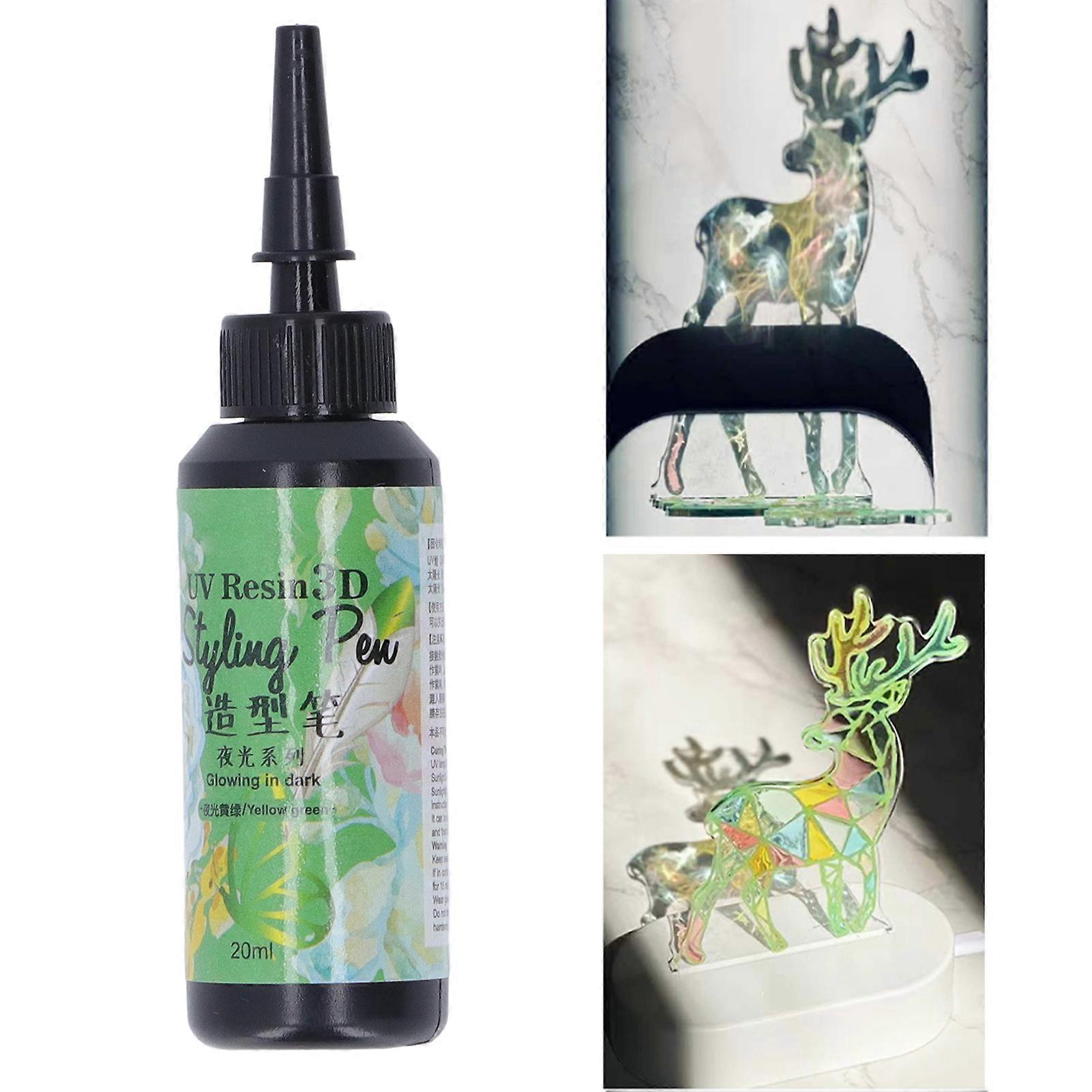 Luminous UV Resin 20ml Pen Shape Design Fast Curing Bright Vivid Color Widely Used UV Epoxy Resin for DIY Craft Jewelry Luminous Yellow Green