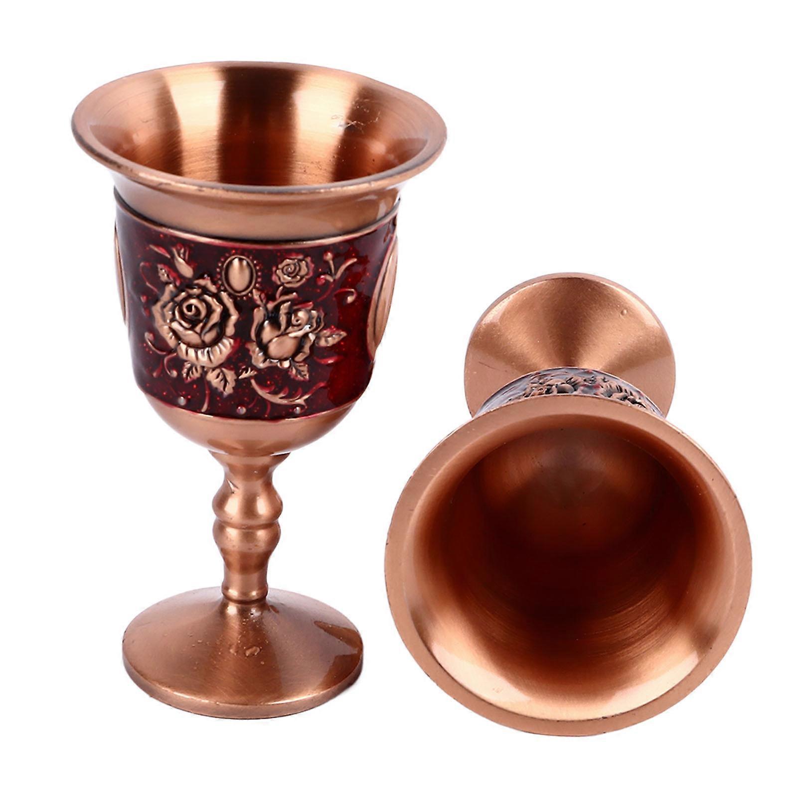 Vintage Metal Wine Glass Embossed Decorative Retro Metal Goblets for Home Bar 2pcs Rose Gold (Red Background)