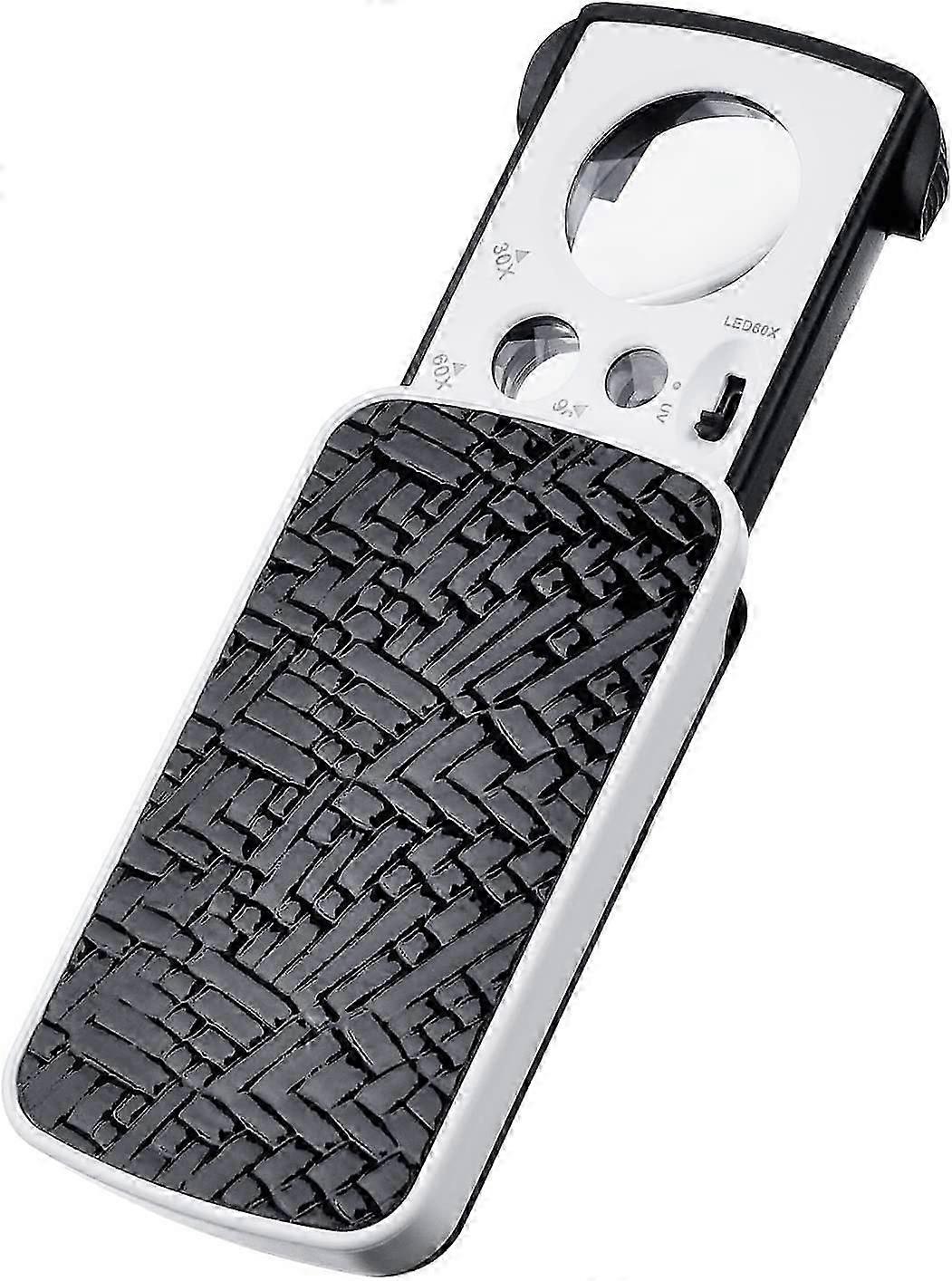 Pocket Magnifier Small Portable Glass Jewelry 30X 60X 90X Magnification with LED and UV Lamps (Black)