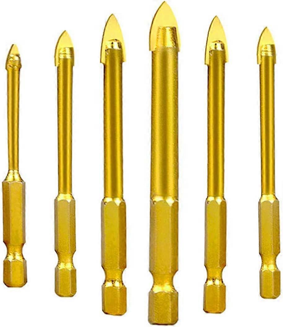 Glass, Ceramic, Tile, Crystal Tungsten Steel Drill Bits, with Hex Shank, Titanium Coated, 3mm, 4mm, 5mm, 6mm, 8mm, 10mm, Set of 6