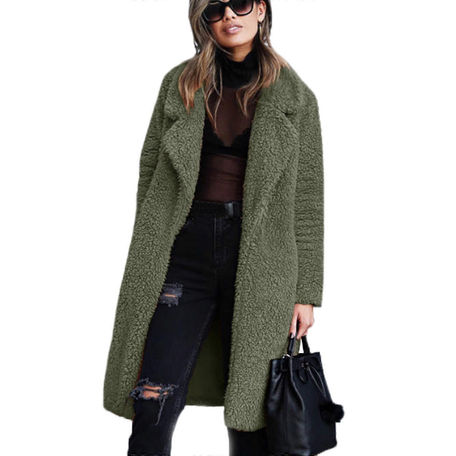 Ladies Jackets Teddy Bear Long Coat Faux Fur Overcoat