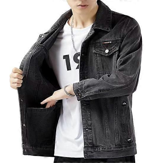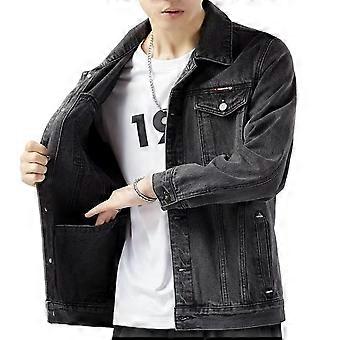 Men Denim Jacket Lapel Long Sleeve Flap Pockets Solid Color Coat Button Closure Casual Denim Outwear Daily Wear
