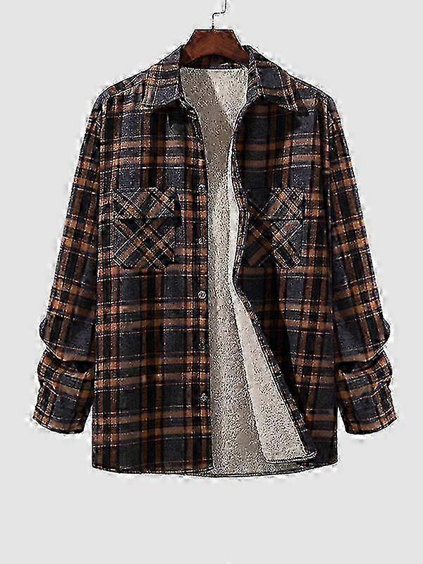 Men's Plaid Double Pocket Fleece-lined Thermal Shirt Jacket
