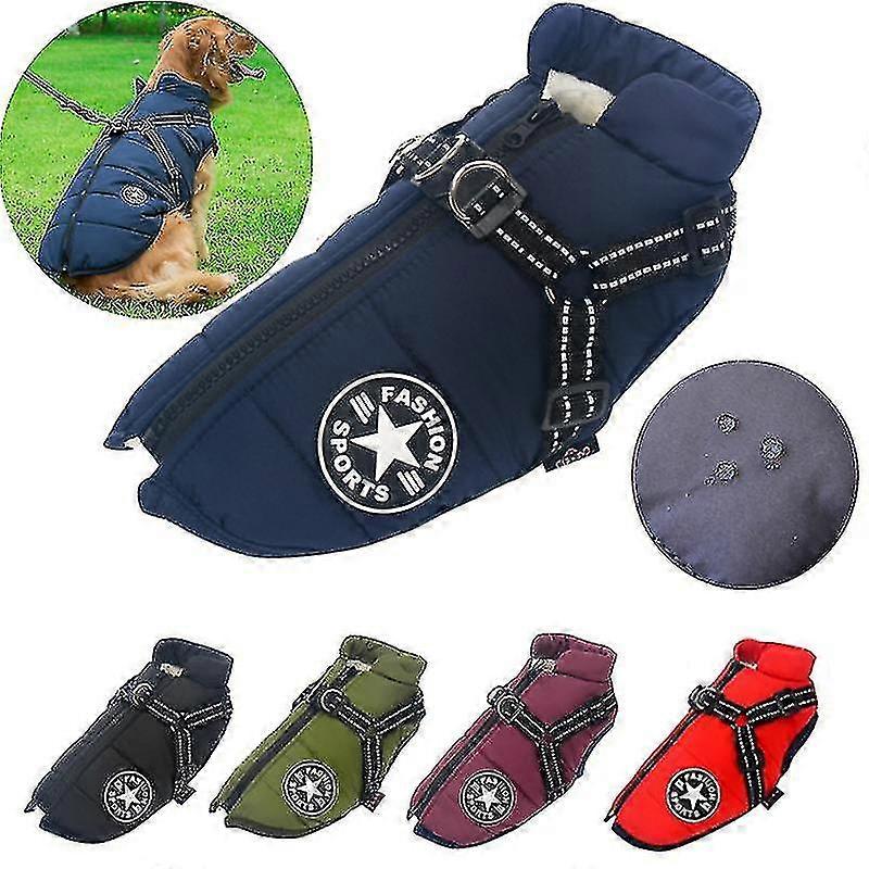 Large Pet Dog Jacket With Harness Winter Warm Dog Clothes