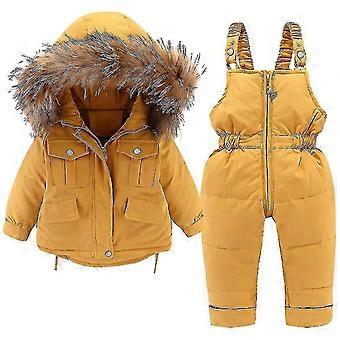 ז'קט למטה ומכנסיים למטה 2 יחידות, בנות בנים מעיל חורף עם חליפות סקי לילדים עם קפוצ'ון ילדים חליפות סקי