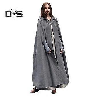 Winter Women Jacket with Hood Medieval Retro Cape Gothic Keep Warm Shawl Ankle Length Loose Cloak Thick Single-Button Closure Outdoor Poncho Pirate