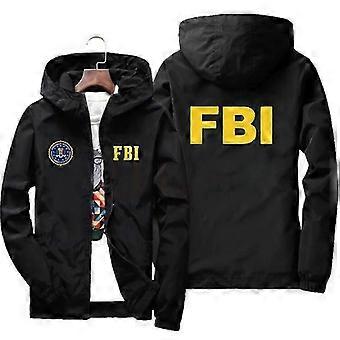 Men's hooded sports jacket, FBI printed jacket, high-quality, windproof, casual, fashionable, spring and autumn season
