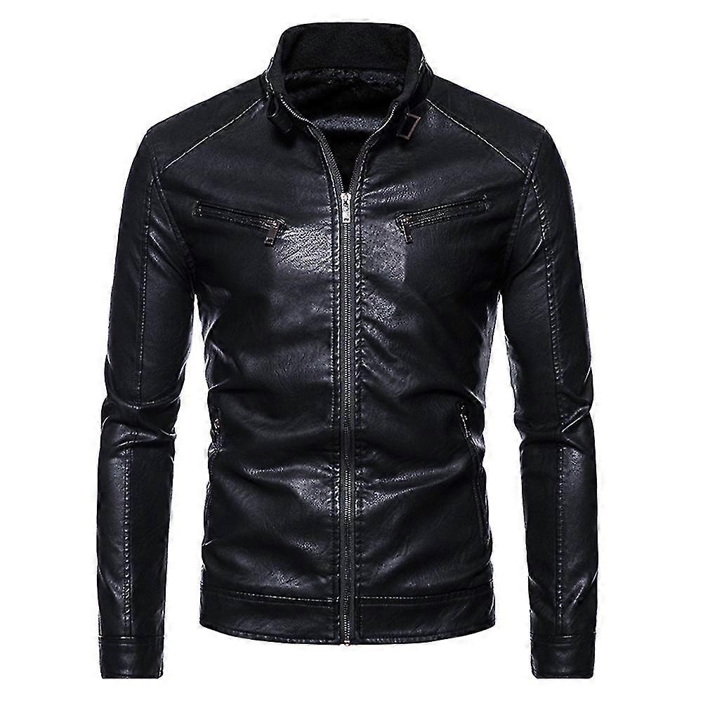 Men's Slim Solid Color Stand Collar Pu Leather Jacket