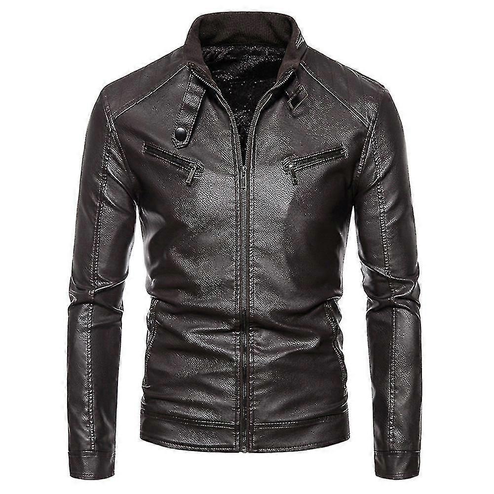 Men's Slim Solid Color Stand Collar Pu Leather Jacket
